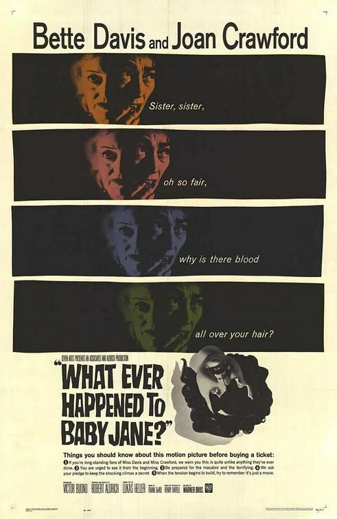 Старшая, одержимая прошлой славой, издевается над младшей, прикованной к инвалидному креслу. Гротескные игры в «чаепития» с мёртвыми птицами, поддельные письма и попытки вернуть внимание публики обнажают ядовитую смесь зависти и безумия. Фильм исследует тему угасания славы, превращая домашнюю драму в триллер с элементами чёрного юмора.