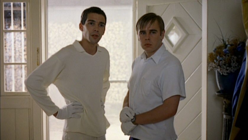 Два вежливых молодых человека приходят в дом семьи и начинают жестокую игру. Без причины и объяснений. Фильм пугает своей отстранённостью. Здесь почти нет крови, но напряжение зашкаливает. Маньяки выглядят пугающе именно из-за своей спокойной манеры.