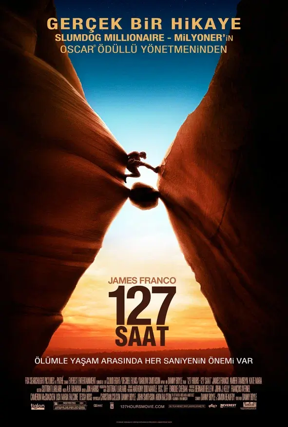 Эрон случайно сдвигает восьмисоттонный валун, который зажимает его руку. Оказавшись в полной изоляции, без воды и еды, Эрон проводит 127 часов в ловушке. Разум Эрона создаёт галлюцинации, он говорит с воображаемой семьёй и детьми, которых у него нет. На грани смерти Эрон понимает, что видение показало ему будущее, в котором он живёт и имеет детей. Это озарение даёт ему решимость.