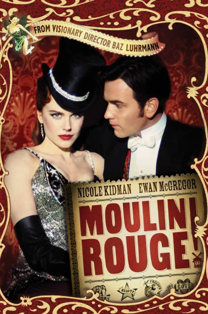 Яркий, экстравагантный мюзикл База Лурмана подарил Николь Кидман одну из самых запоминающихся ролей в карьере — куртизанку Сатин, «алмазную собачку» кабаре «Мулен Руж». Её героиня, таящая от всех свою смертельную болезнь, влюбляется в бедного писателя Кристиана (Юэн Макгрегор), но вынуждена обольщать богатого герцога, чтобы спасти театр. Кидман не только великолепно выглядит в роскошных нарядах той эпохи, но и прекрасно поёт. Трогательная баллада «Come What May» в исполнении дуэта с Макгрегором стала хитом.