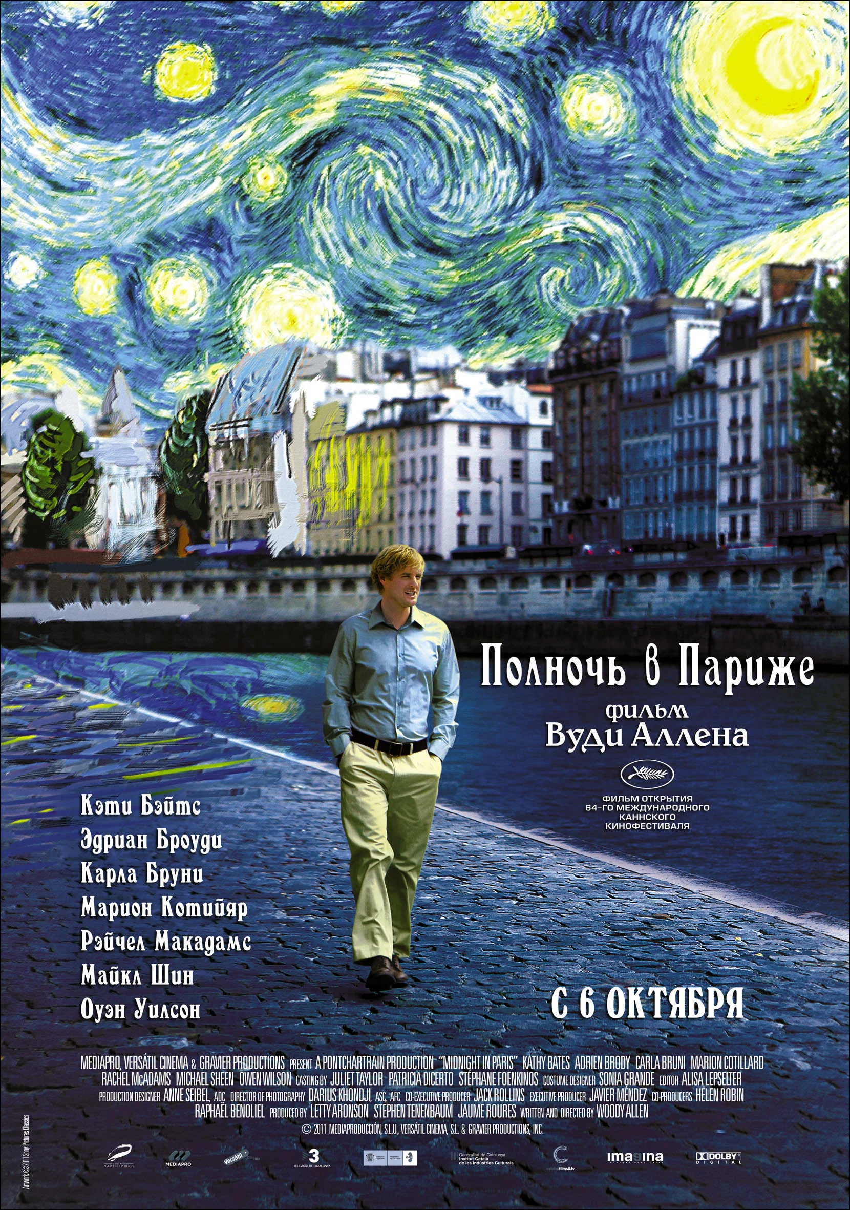 О чем: Сценарист Гил (Оуэн Уилсон), безнадежный романтик и любитель старины, приезжает в Париж со своей невестой Инес (Рэйчел Макадамс). Пока Гил по ночам магическим образом переносится в 1920-е годы, общаясь с Хемингуэем и Дали, приземленная Инес предпочитает проводить время с их общим знакомым Полом, обсуждая антиквариат и планируя будущее в Беверли-Хиллз.