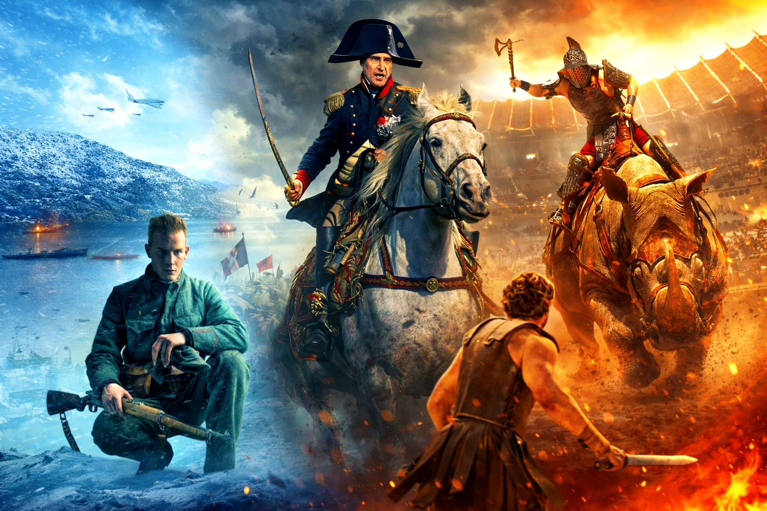 Историческая драма Ридли Скотта посвящена жизни Наполеона Бонапарта, начиная от его стремительного восхождения от молодого офицера до императора Франции и одного из самых известных полководцев в истории. Картина показывает ключевые военные кампании, политические интриги и амбиции героя, но особое внимание уделяется его сложным отношениям с Жозефиной, ставшим эмоциональным центром повествования. Победы и поражения, триумф и одиночество постепенно раскрывают противоречивую личность человека, одержимого властью и признанием. Фильм сочетает масштабные военные сцены с психологическим портретом лидера, чьи решения перевернули ход европейской истории.