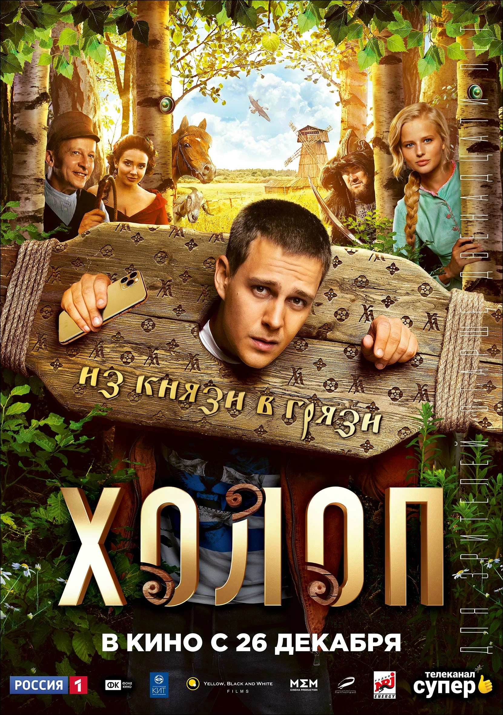 Фильм «Холоп» (2019) — комедийная история о мажоре Грише, который после аварии оказывается в 1860 году, в мире крепостного права.