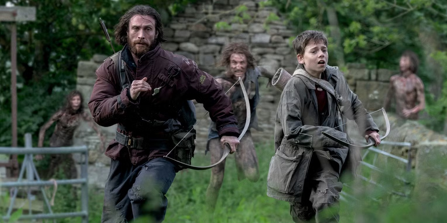 Но прежде — вспомним в общих чертах, что увидели в «28 лет спустя». Главные герои фильма после почти трех десятков лет с начала заражения держат оборону на острове близ Британии, соединенном с большой землей небольшой перемычкой, открывающейся только при отливе. Изолированное общество постепенно деградирует, поэтому на острове некому помочь тяжело больной Айле. Узнав о том, что где-то на побережье есть доктор, ее сын Спайк решает отправиться к нему за помощью. Обманув отца и охрану острова, мальчишка уводит мать в кишащие зомби леса…