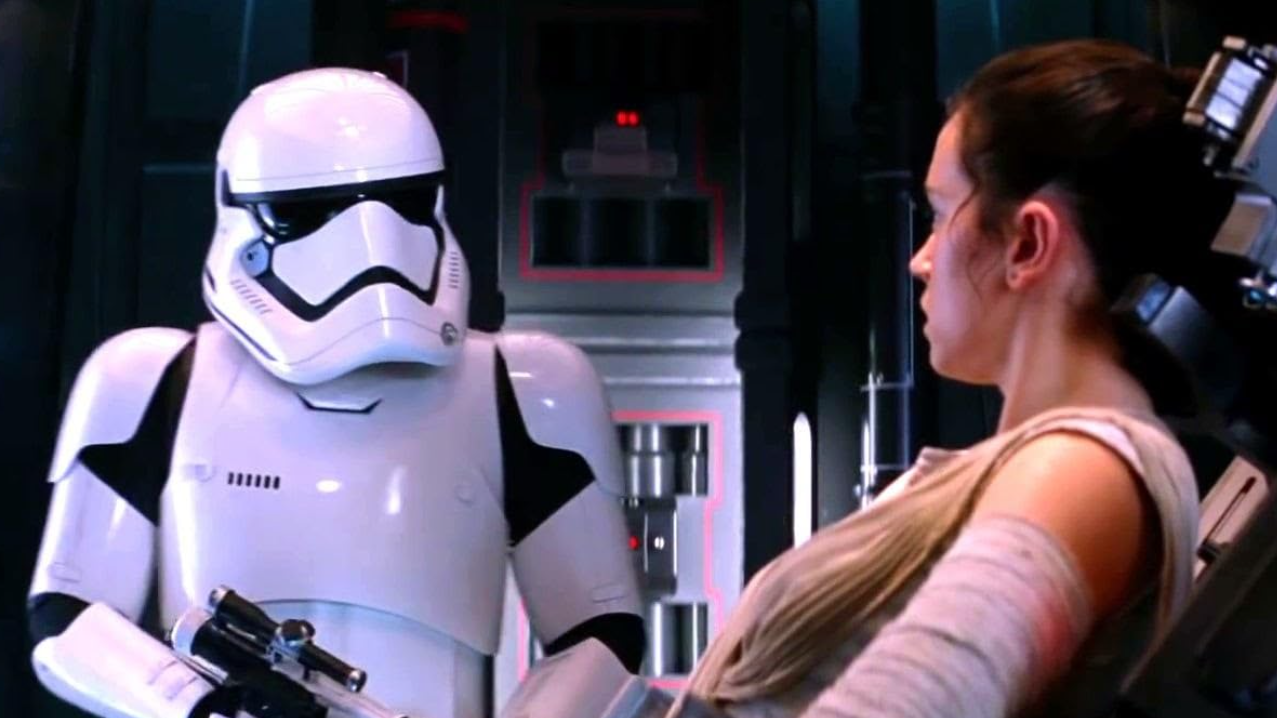 В то время, когда Рей пытается сбежать с «Сопротивлением», штурмовик, попавшийся ей на пути, становится жертвой ментального приёма Джедаев. Исполнитель роли Джеймса Бонда появился в эпизоде в качестве камео.