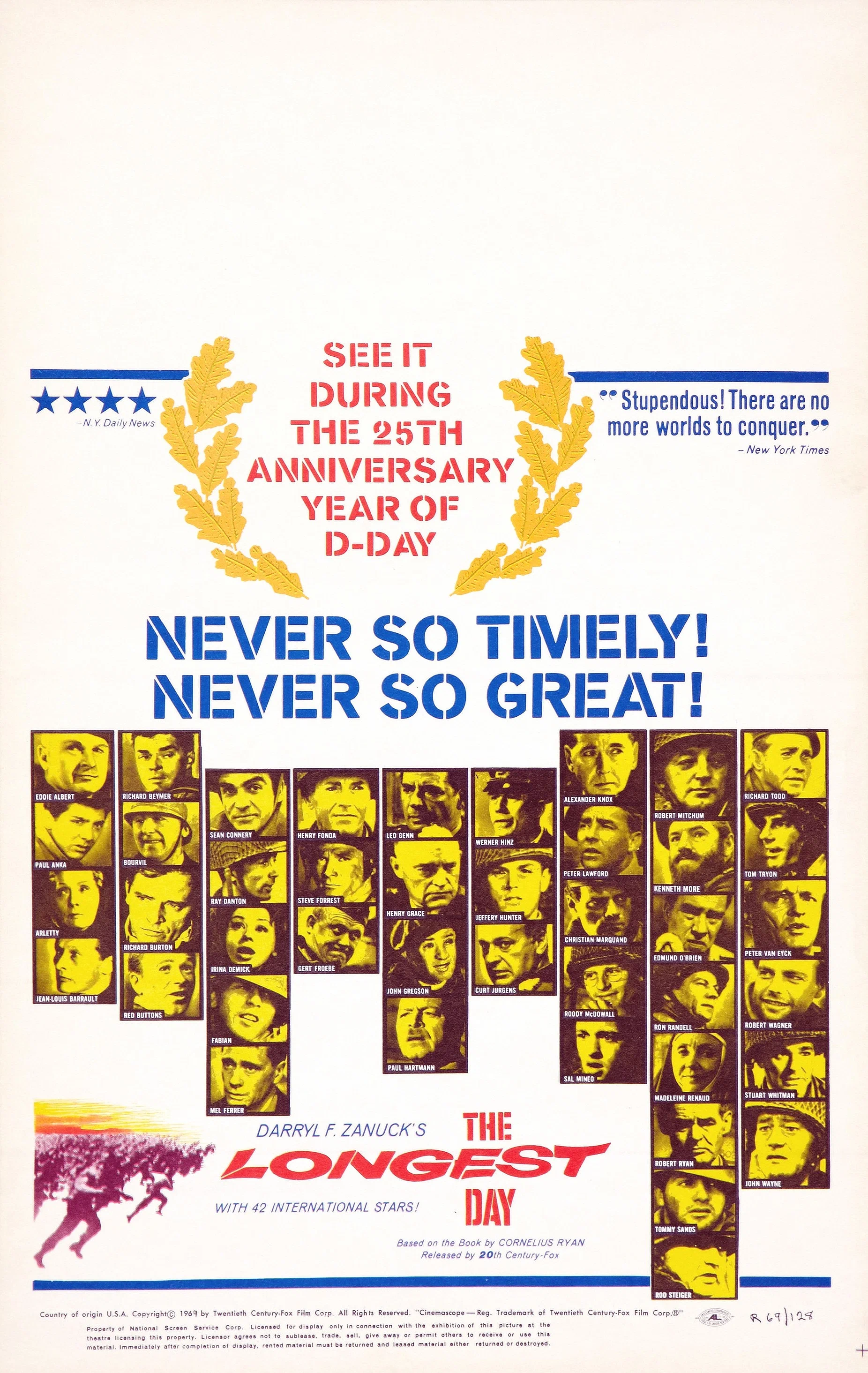 Экранизация одноимённой книги Корнелиуса Райана сохранена в документальном стиле: каждое действие от подготовки флота и воздушных десантов до штурма береговых укреплений показано с разных точек зрения — союзников и немцев.