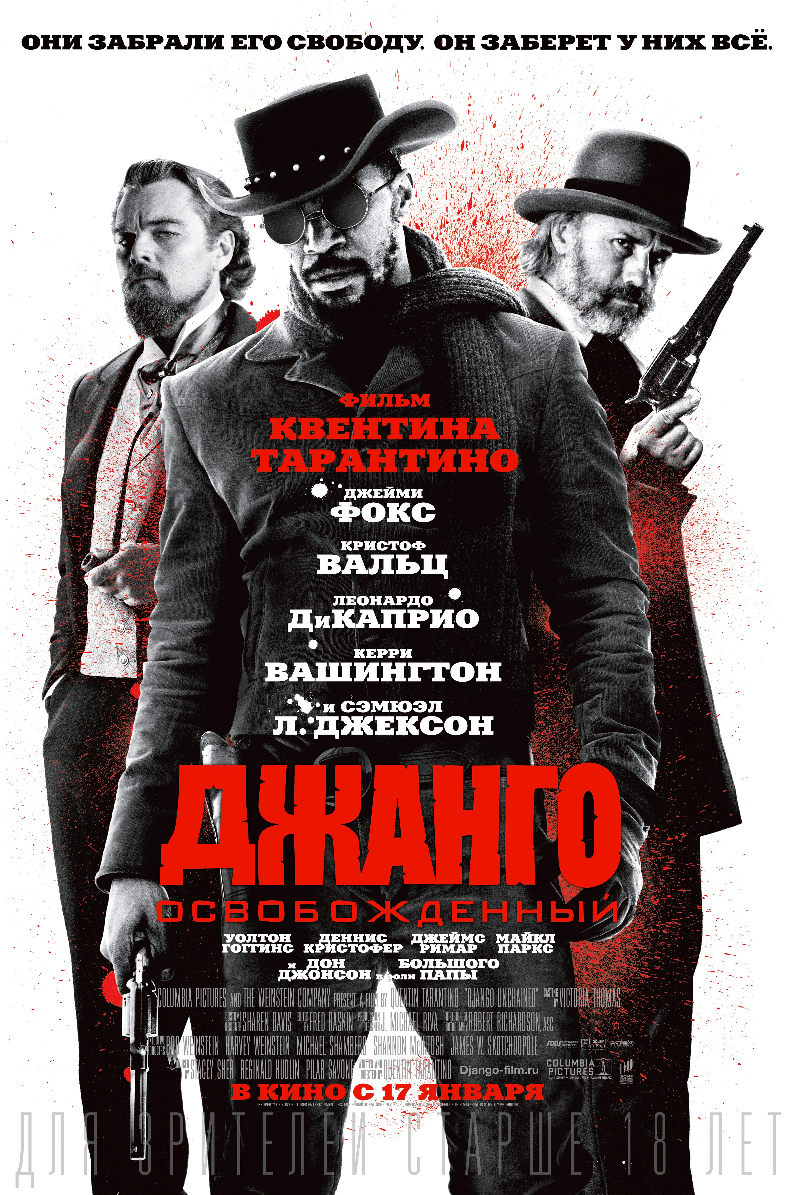 «Джанго освобождённый», этот фильм заслуживает отдельного внимания, потому что рассказывает о рассовом расколе и рабстве, где негры могут быть рабами и также могут быть прислугами.
