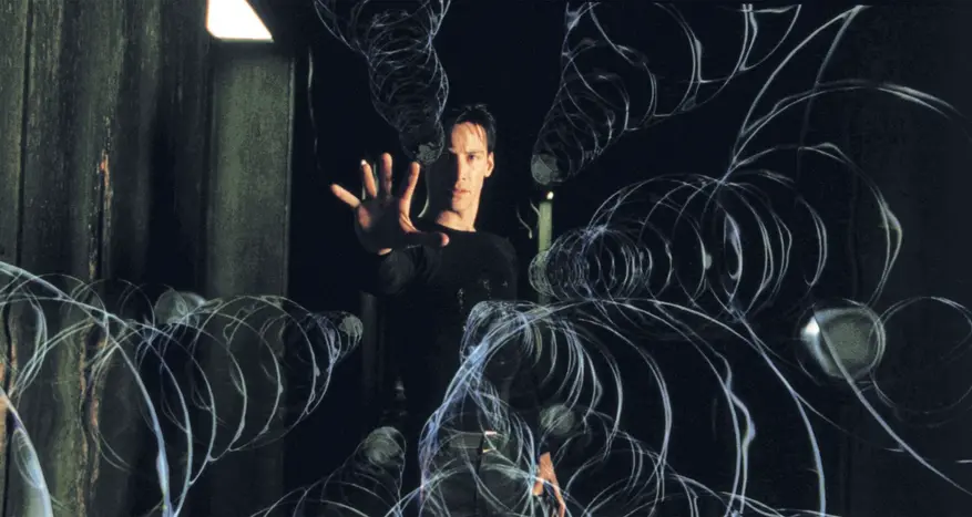 Обычный хакер живёт в мире 1999 года, но чувствует, что что-то не так. Однажды ему открывают правду: всё вокруг — компьютерная симуляция, созданная машинами, которые давно поработили человечество и используют людей как батарейки. Реальный мир — мрачный постапокалипсис, где выжившие прячутся в подземных кораблях и ведут партизанскую войну. Герой учится ломать код реальности, гнуть ложки и останавливать пули взглядом.