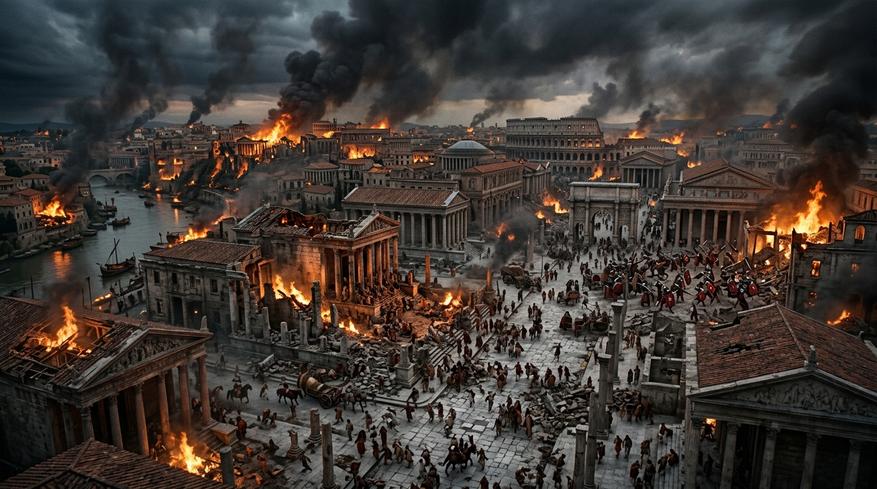 Огромная держава, которая казалась незыблемой, начинает терять устойчивость изнутри. После смерти сильного правителя в Риме обостряется борьба за власть, и именно она запускает цепочку событий, ведущих к ослаблению всей системы. Политические интриги, предательство и личные амбиции постепенно подтачивают империю, делая её уязвимой. На фоне этих процессов становится заметно, как меняется сама структура государства: армия уже не так лояльна, решения принимаются всё более хаотично, а границы становятся менее защищёнными. Попытки удержать контроль лишь ускоряют распад. Фильм показывает не одно событие, а целый процесс, как великая империя шаг за шагом теряет баланс и приходит к состоянию, в котором её существование уже невозможно в прежнем виде.