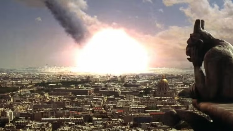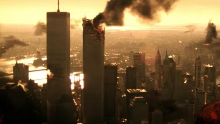Первое столкновение с реальностью случилось у «Армагеддона» в 2001 году. Вы наверняка помните, что фильм начинается с метеоритного дождя — на поверхность планеты обрушивается каменный дождь из сопровождающего основное тело метеорита космического мусора. Огненный град наносит ущерб многим крупным городам, среди них нашлось и Нью-Йорку, горячо любимому Бэем месту. Режиссер буквально наслаждается ударами по мегаполису — метеориты пробивают автомобили и входы в метро, разрушают несколько крупных зданий, в том числе Центральный вокзал и пару небоскребов. Все это, разумеется, сопровождается паникой и характерными планами улиц, по которым в ужасе бегут люди.