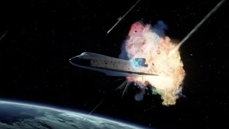 Но это еще не все. Буквально перед метеоритным дождем в Нью-Йорке в фильме присутствует и еще одна знаковая сцена. Первым под удар попадает космический шаттл «Атлантис», находящийся на орбите. Мы видим астронавта, ведущего внешне-корабельные работы, и экипаж, беседующий с Центром управления полетами в Хьюстоне. В этот момент по шаттлу ударяет каменный дождь, корабль взрывается, ЦУП может лишь в ужасе слышать предсмертные крики астронавтов. Как и в случае с Башнями-близнецами, реальность вскоре догнала вымысел «Армагеддона» — 1 февраля 2003 года, впервые со времен «Челленджера» потерпел катастрофу американский космический челнок «Коламбия». Войдя в атмосферу и направляясь на посадочную полосу, шаттл развалился в полете, убив семь астронавтов, составлявших экипаж корабля.