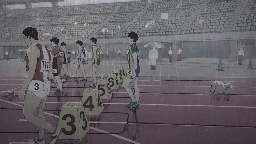 Главная беда аниме — переделать статичную картинку первоисточника манги в динамичное повествование, но у режиссера это и не беда, а скорее широкое поле для демонстрации возможностей. Анимация вплоть до мельчайших черточек проработана, погружая словно внутрь картинки. Также активно применяется ротоскопирование, то есть каждый кадр аниме — это обрисовка вполне реальных поз спортсменов и действий, что лишь прибавляет к реалистичности пару десятков очков. И именно на эту трудозатратную технику ушла львиная доля времени. Достаточно упомянуть, что одна сцена пробежки под дождем заняла у команды год времени. Но результат налицо.