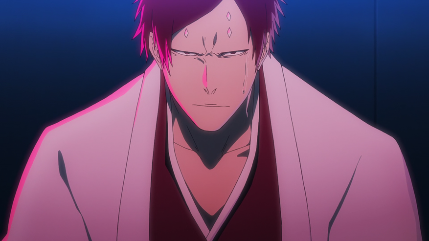 Идём дальше. Был вырезан небольшой диалог между королём квинси и одним из штернриттеров. Ещё убрали кадр с объяснением того, почему квинси, похожий на рестлера, провалился вниз. Поменяли и диалог между капитаном и лейтенантом 6-го отряда о запечатывании банкаев. А так же этот сам диалог сузили именно до этих двух героев, вместо всех 4-ех капитанов, развивавшийся параллельно в манге. Затем, изменена реакция главнокомандующего на произошедшее с этими самыми капитанами. Хотя тут я не исключаю, что её просто перенесут на следующий эпизод. А ещё убрали сцену, где Акон пытается понять, где находится Ичиго и некоторые его мысли. Плюс несколько юмористических сценок.
