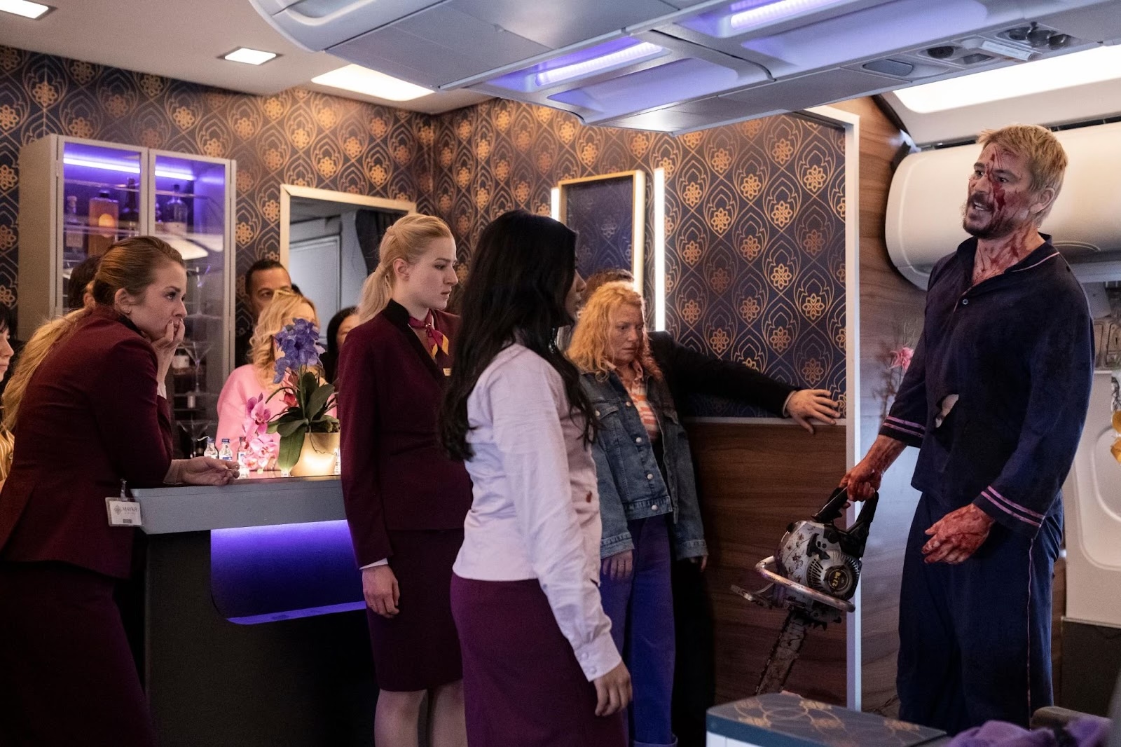 Итак, если вы в мучительном выборе тяжёлой драмы, которая загрузит вам в мозг дозу экзистенциального кризиса, то я поспешу вас отговорить. Кризисов в жизни и так хватает. А разгрузить себя задорным боевиком временами даже полезно. Теперь разберём, почему я советую именно «Рейс навылет». В некоторых переводах его можно увидеть под названием «Дерись или лети». Второе даже больше соответствует стебной и ироничной атмосфере фильма. Кстати, из названия статьи можно уловить суть происходящего. Маньяка не обещаю, но крови будет достаточно. Да что там кровь, пила тоже будет.