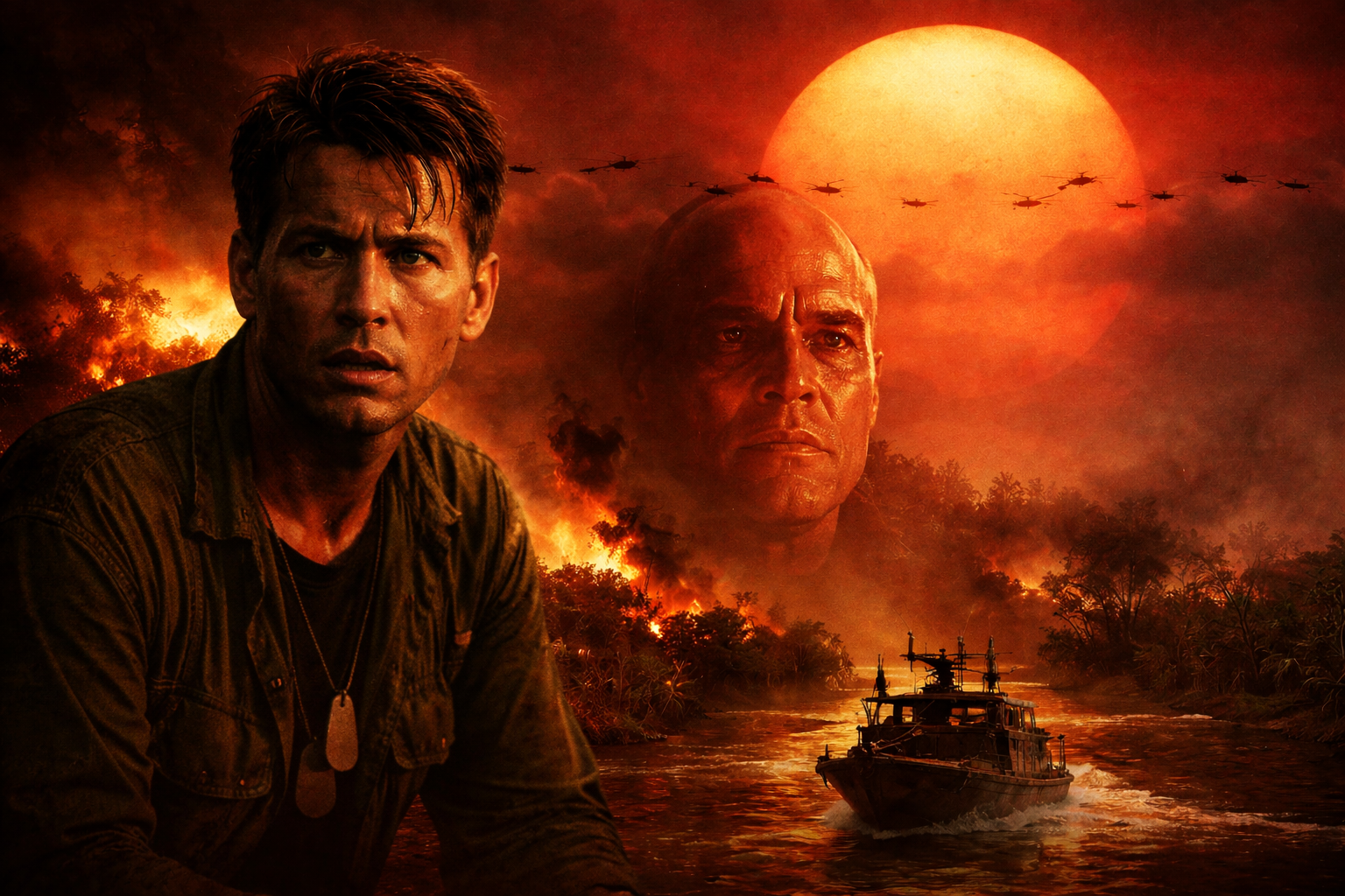 Путешествие по реке превращается в погружение в самую суть войны: Уиллард сталкивается с хаосом, насилием и моральным разложением, наблюдая, как человеческая психика ломается под давлением безумия и отчаяния. Каждое мгновение приближает его к Курцу, но одновременно заставляет задуматься о границах собственной человечности и цене исполнения приказа.