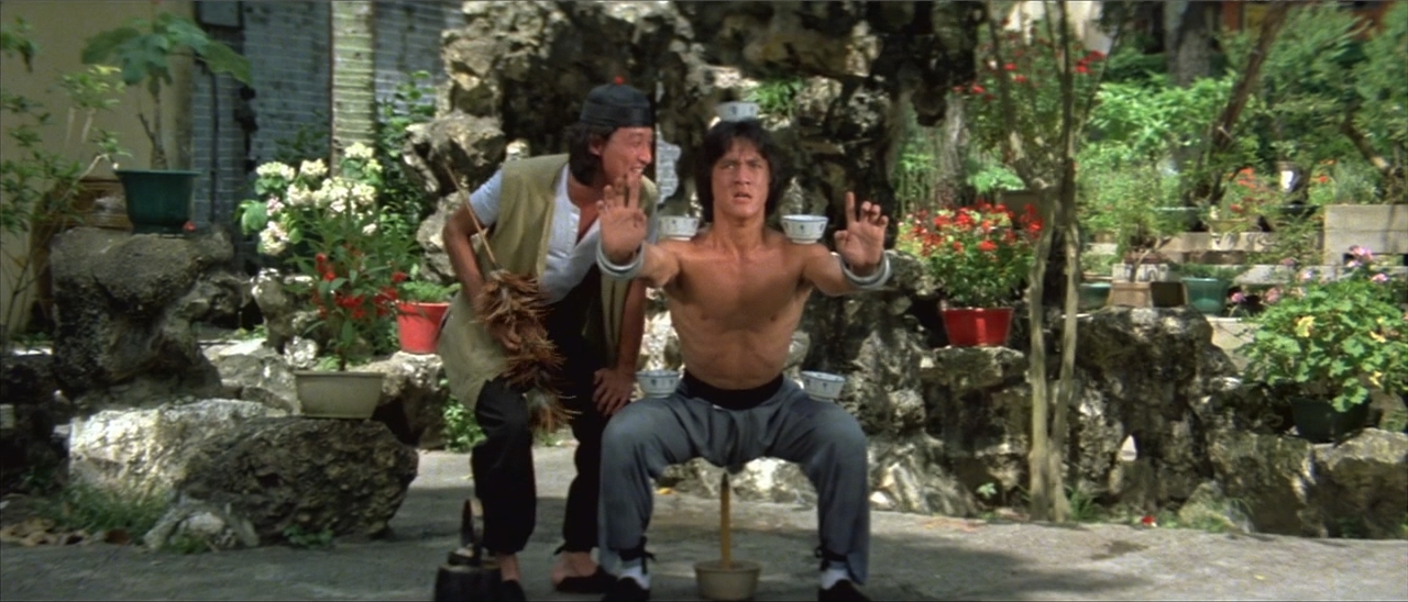 Молодой Джеки Чан, находящийся в прекрасной физической форме. Он способен сыграть как движения ученика, так и натренированого мастера. Ну и конечно пьяное кунг-фу в его исполнении это просто нечто. Яркий пример, что актерское мастерство заключается не только в лицедействе.