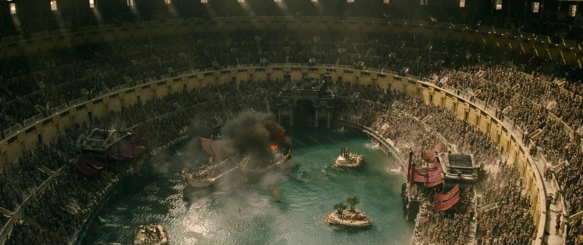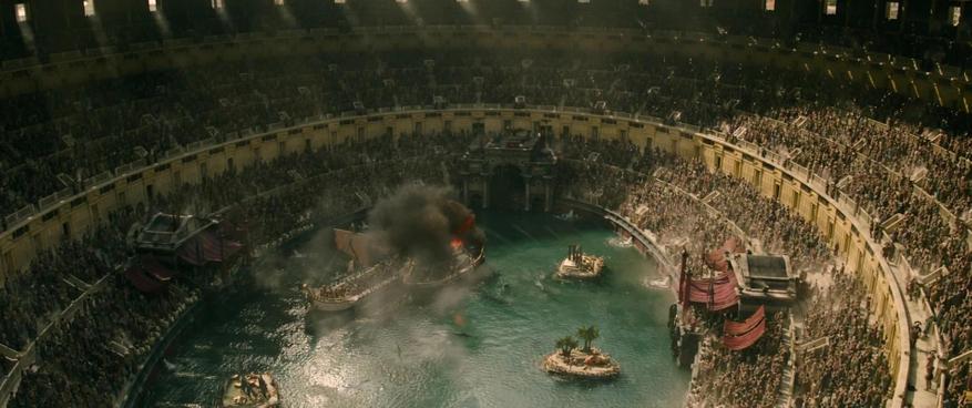 Если первый «Гладиатор» поражал своими масштабными съемками, натурными локациями и эпическими сценами сражений, то в сиквеле наблюдается неприятная тенденция к чрезмерному использованию CGI. Особенно удручают сцены с наполненным водой Колизеем, плавающими кораблями и… акулами. Весь этот эпизод выглядит не как историческая драма, а как что-то из жанра фэнтези, совершенно выбиваясь из реализма, которым славился оригинал.
