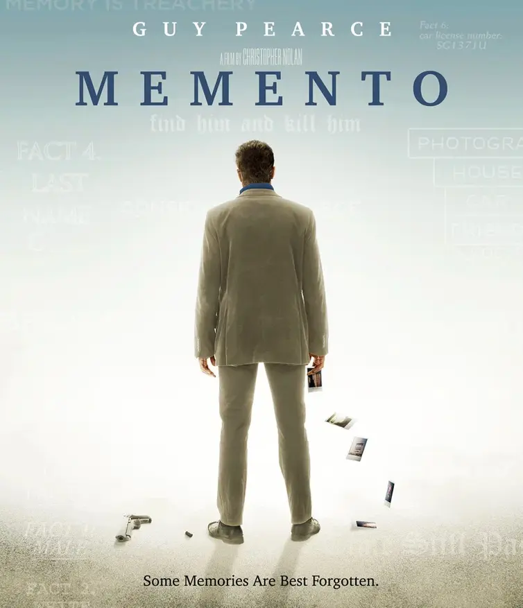 Главный герой страдает редкой формой амнезии и запоминает события лишь на несколько минут. Чтобы найти убийцу жены, он фиксирует подсказки на фотографиях и собственном теле. Повествование выстроено фрагментарно и движется в обратном порядке, превращая просмотр в сложную интеллектуальную задачу. Зритель, как и персонаж, вынужден сомневаться в каждом факте и самостоятельно восстанавливать картину происходящего.