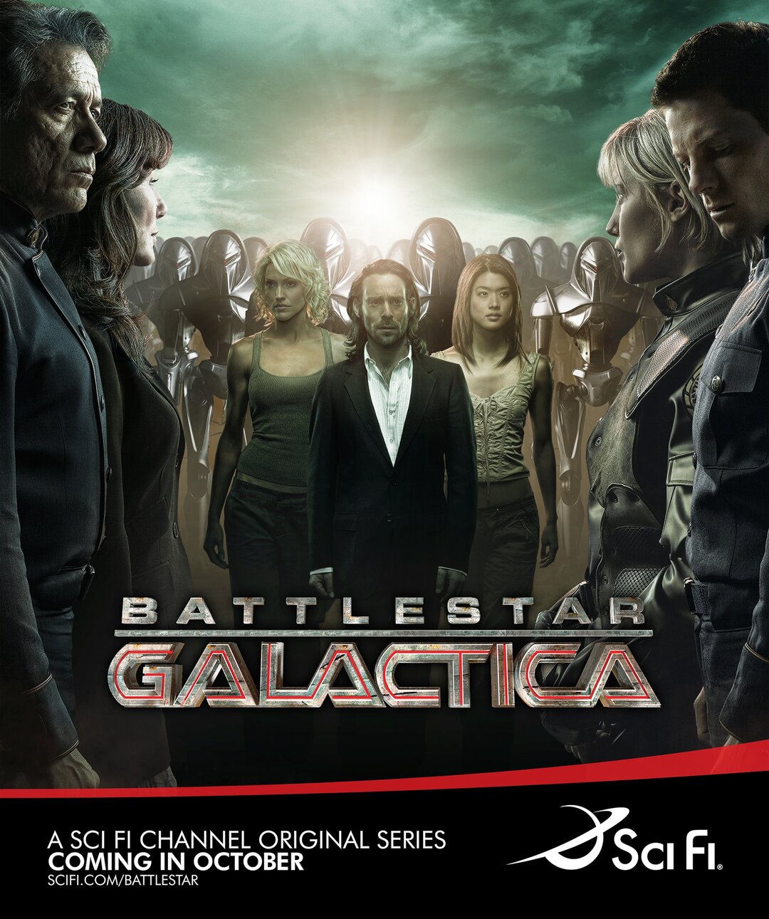 Человеческая раса скитается по Вселенной, преследуемая сайлонами — человекоподобными роботами, восставшими против людей. Выжившие перемещаются на звёздном крейсере в надежде обрести новый дом и возродить цивилизацию. Усложняет дело тот факт, что сайлоны внешне неотличимы от человека, и любой член команды может быть «спящим» агентом врага, даже не зная об этом. Напряжённые отношения внутри экипажа, атмосфера паранойи, постоянные атаки сайлонских кораблей и регулярные бытовые проблемы, такие как поиски воды и пропитания создают особый драматизм сюжета. Ремейк оригинального сериала 1978 года.