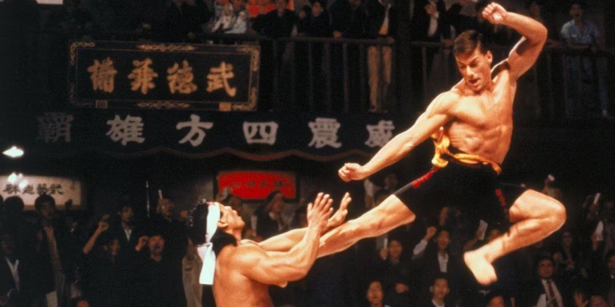 Жан-Клод Ван Дамм в 1980-х действительно в большей степени был спортсменом, а уже потом актером. Бельгиец уже в 16 лет стал обладателем черного пояса по карате, участие и победы в реальных турнирах подтверждают высокий уровень его физической готовности. Помимо карате, Ван Дамм овладел навыками других видами боевых искусств — кикбоксинга, муай тай, кунг-фу и тхэквондо — все это впоследствии пригодилось ему в кино. И хотя на экране он впервые засветился еще в 1979-м, прорывным для актера (я все-таки буду называть Ван Дамма актером) стал «Кровавый спорт» — боевик 1988 года.