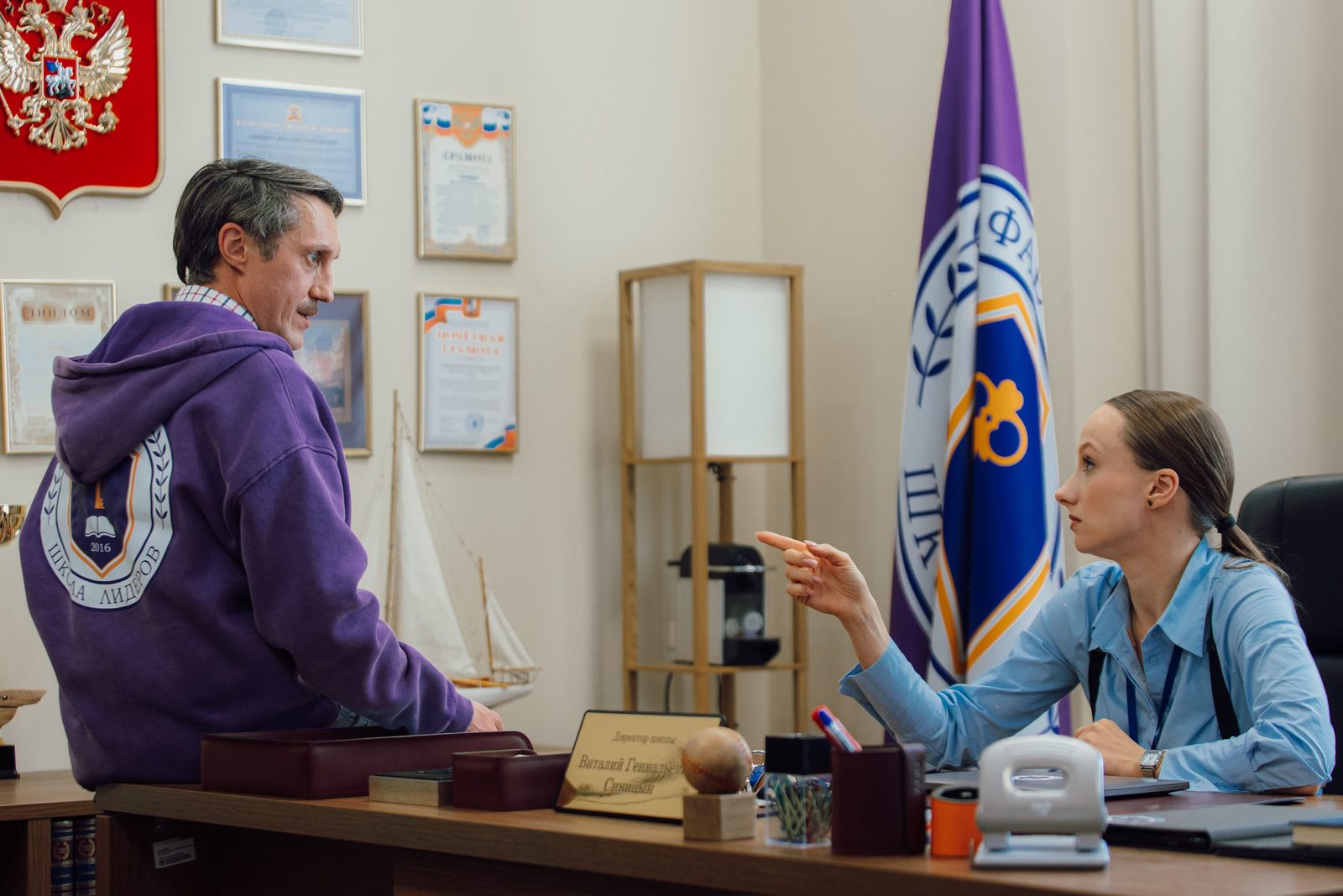 Директор школы. Не персонаж, а ходячий набор гэгов из КВН двадцатилетней давности. «Эффективный менеджер», чья единственная функция — создавать абсурдные ситуации. Не антагонист и не союзник — просто сценарный костыль.