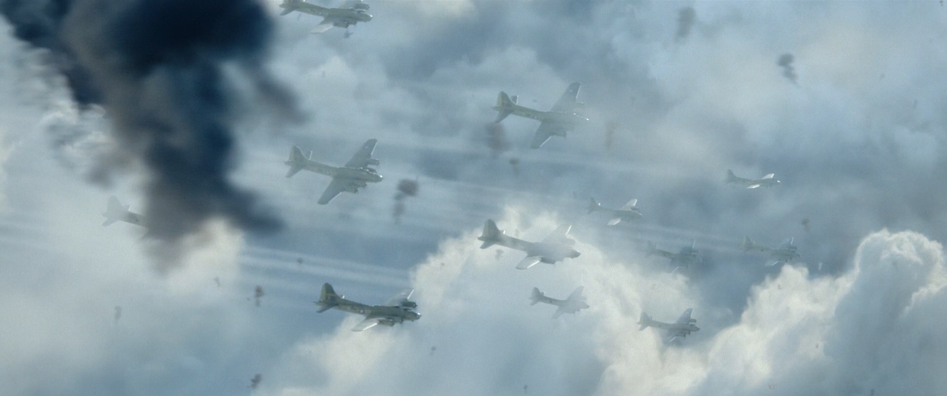 Это то из-за чего данный сериал можно посмотреть. Дело здесь даже не в том, что воздушные бои здесь как-то круто и реалистично поставлены. Дело в том, что авторам удалось передать напряжение тех событий на экране. Фильм интересно смотреть, даже когда они просто куда-то летят. Ведь не только огонь зенитной батареи и немецкие истребители могут стать причиной гибели всего экипажа. Свою роль могут сыграть и ошибки штурмана, и отказ двигателей, и нехватка топлива из-за утечки.
