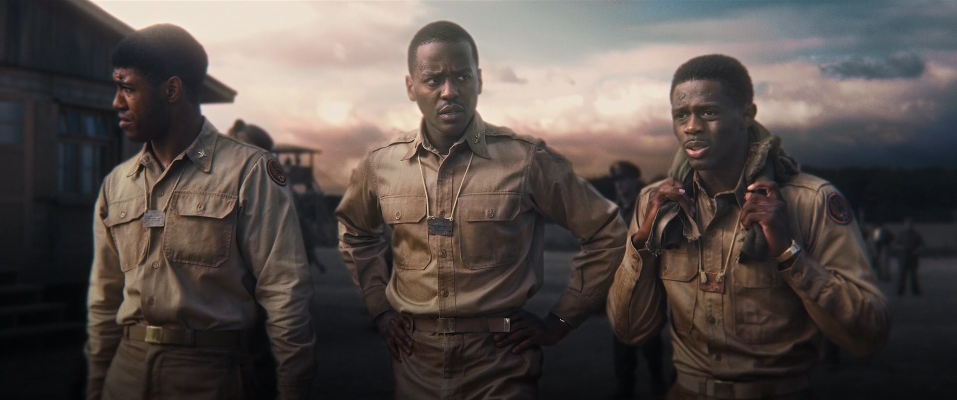 Естественно, не забыли авторы и о чернокожих пилотах. Оно, конечно, хорошо, что про них лишний раз напомнили. Всё-таки это реальные исторические личности, а не выдуманные персонажи для отработки повестки. Вот только это ещё больше персонажей, имён которых не успеваешь запомнить. Да и лучше уж фильм «Пилоты из Таскиги» с Лоренсом Фишбёрном посмотреть. Там и про расизм тема получше раскрыта, да и персонажей не так много. Кстати, в War Thunder даже сделана моделька чернокожего пилота P-51c-10, и камуфляжи исторические есть.