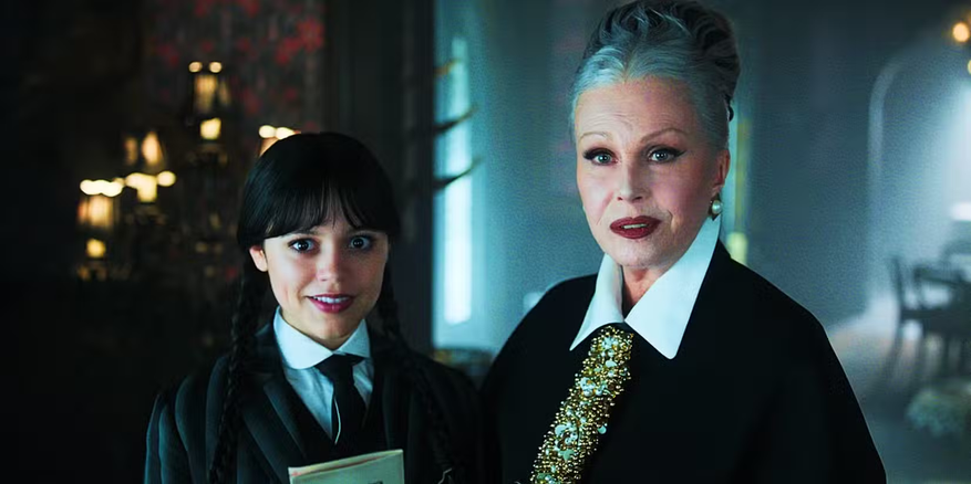 В первом сезоне сериала эмоциональная отстраненность персонажа была нарушена лишь однажды — когда в «Невермор» приезжает дядя Фестер Аддамс. Это очень трогательный эпизод — беспокойство Уэнсдей по поводу таинственной фигуры в плаще сменяется искренним счастьем, когда девушка понимает, что перед ней чудаковатый брат ее отца. Фестер не только говорит Уэнсдей, что она — его любимый член семьи, но и получает ответный комплемент, племянница любезно допускает его к расследованию убийства. Мы понимаем, что между Уэнсдей и Фестером существует более тесная связь и взаимопонимание, чем с другими членами странной семейки. Попутно заглавная героиня демонстрирует теплоту и доброту, которую полностью отрицает на словах и прячет очень глубоко.