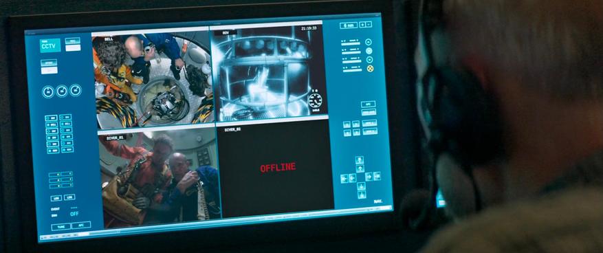 Звуковое сопровождение играет не меньшую роль — давление воды, скрип конструкций, шум работающих систем создают звуковой фон, который буквально погружает зрителя в глубину. Отдельно стоит отметить звуковой монтаж — сцены, в которых дайвер остаётся без кислорода, буквально заставляют зрителя задерживать дыхание.