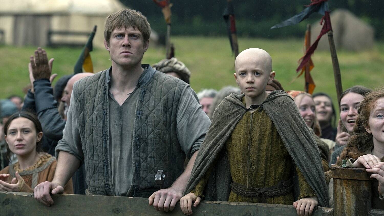 Рядом с Дунканом шагает Эгг — болезненно тщедушный, лысый мальчишка с совершенно недетской речью и острым умом. Этот дуэт — прямое попадание в цель. Декстер Сол Ансел, играющий Эгга, удивительно органичен в роли ребенка, который, несмотря на всю свою хитрость и природную смекалку, остается именно ребенком, а не «маленьким талантливым взрослым», как это часто бывает. Если вы хоть немного знакомы с книгами Мартина, то знаете, что за этой бритой головой скрывается не просто уличный мальчишка, а не кто иной, как Эйгон Таргариен, будущий король. И именно в этой незамысловатой динамике между простаком, мечтающим о чести, и принцем, скрывающим свое происхождение, кроется львиная доля очарования сериала. Их взаимодействие — это не высокопарные диалоги о судьбах королевств, а искренняя, порой смешная, порой трогательная дружба.