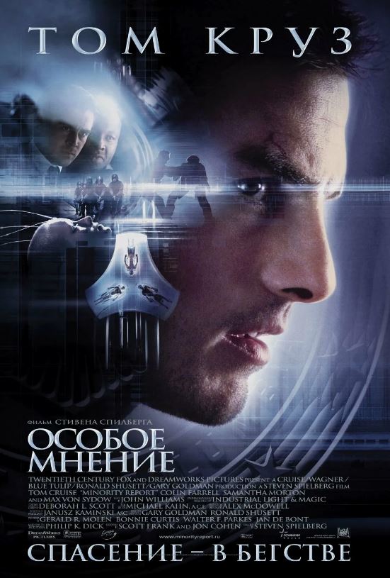 Футуристический нуар и интеллектуальный триллер, в котором Спилберг создаёт один из самых детализированных и «живых» образов будущего. Мир, где преступления предсказывают и предотвращают до их совершения, ставит главного героя Джона Андертона (Том Круз) в положение преследуемого преступника. Используя революционные визуальные эффекты, режиссёр погружает нас в водоворот действия, но главная интрига — философская: есть ли у человека свобода воли, если его будущее предопределено? Фильм сочетает головокружительные экшен-сцены (вроде знаменитой погони на «джетах») с размышлениями о судьбе, предопределении и цене безопасности.