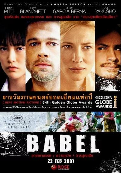 Алехандро Гонсалес Иньярриту получил в Каннах приз за лучшую режиссуру за этот мощный, многослойный фильм о невозможности коммуникации. «Вавилон» состоит из четырёх историй, разбросанных по трём континентам, которые связаны одним случайным выстрелом из винтовки. Марокканский мальчишка проверяет дальность боя ружья и попадает в туристический автобус с американкой Сьюзен. Её муж Ричард (Брэд Питт) вынужден искать помощь в глухой марокканской деревне. Тем временем в США двое их детей остаются с няней-мексиканкой Амелией, которая решает взять их с собой на свадьбу сына через границу. А в далёкой Японии глухая девушка Тиэко пытается найти любовь и понимание в мире, который её отвергает. Иньярриту мастерски переплетает судьбы, показывая, как один поступок может аукнуться на другом конце света.