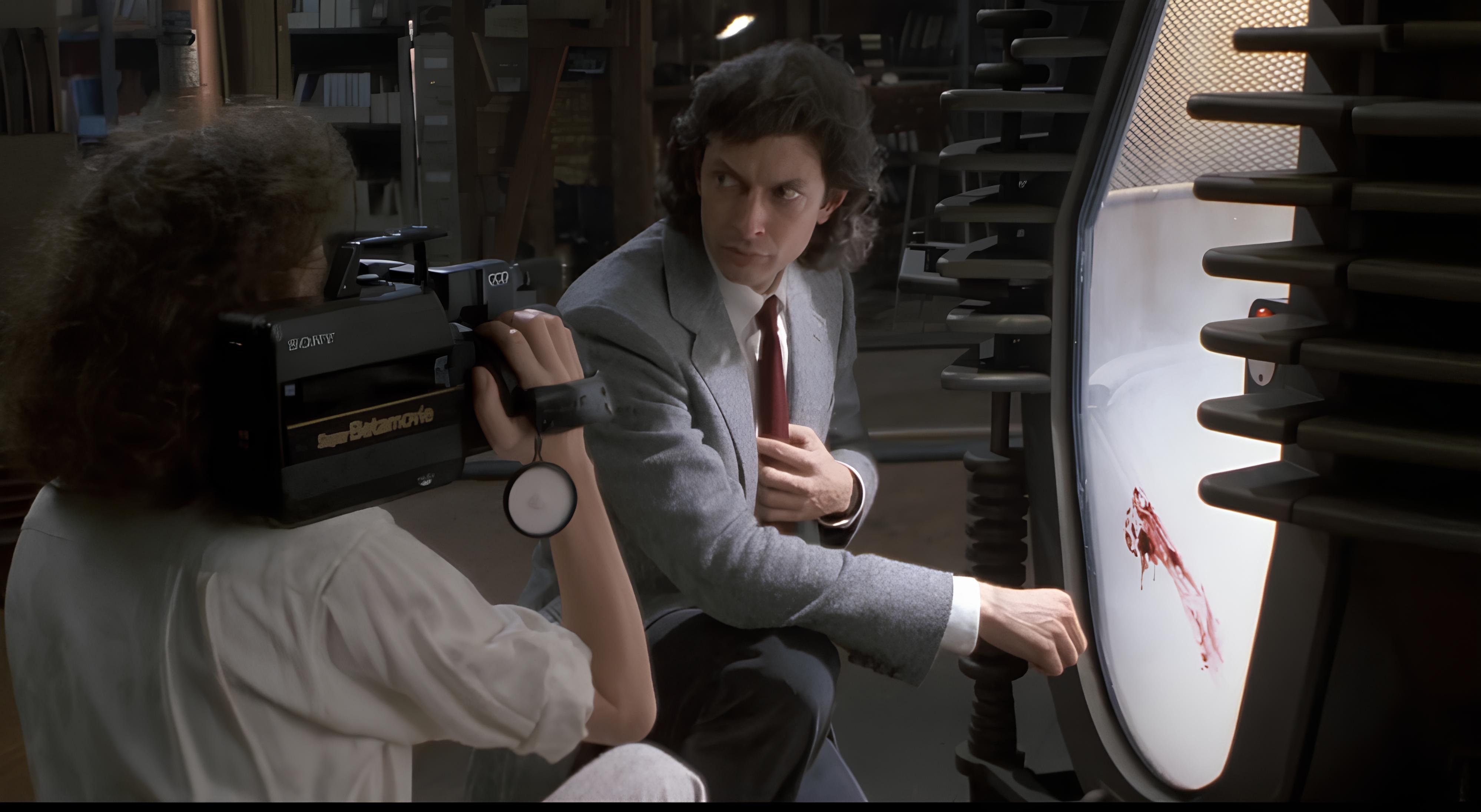 Блестящий, но эксцентричный учёный Сет Брандл работает над революционным аппаратом для телепортации. Его эксперимент почти увенчался успехом, но в камеру вместе с ним проникает обычная муха. «Муха» Дэвида Кроненберга — это вершина телесного хоррора и одна из самых пронзительных трагедий в жанре. На наших глазах обаятельный и гениальный Сет (виртуозная игра Джеффа Голдблюма) медленно и необратимо превращается в чудовище. Фильм исследует ужас распада личности, старения, болезни и потери человеческого облика. Каждая новая стадия мутации — это новый виток физических страданий и психологической агонии. Но в сердце этой истории — любовь.