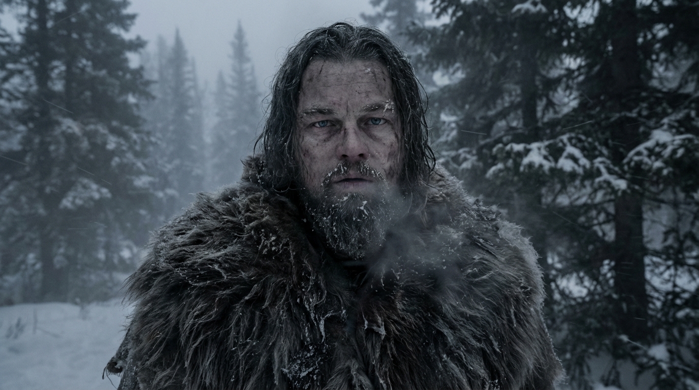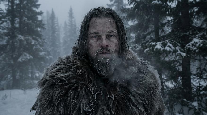 Он мёрзнет. Ест сырое мясо. Спит в снегу. Падает в ледяную воду. Зашивает себя как может. Просто медленно тащит тело через лес и горы. Никакой романтики. Иногда даже неловко смотреть, настолько всё физически неприятно.