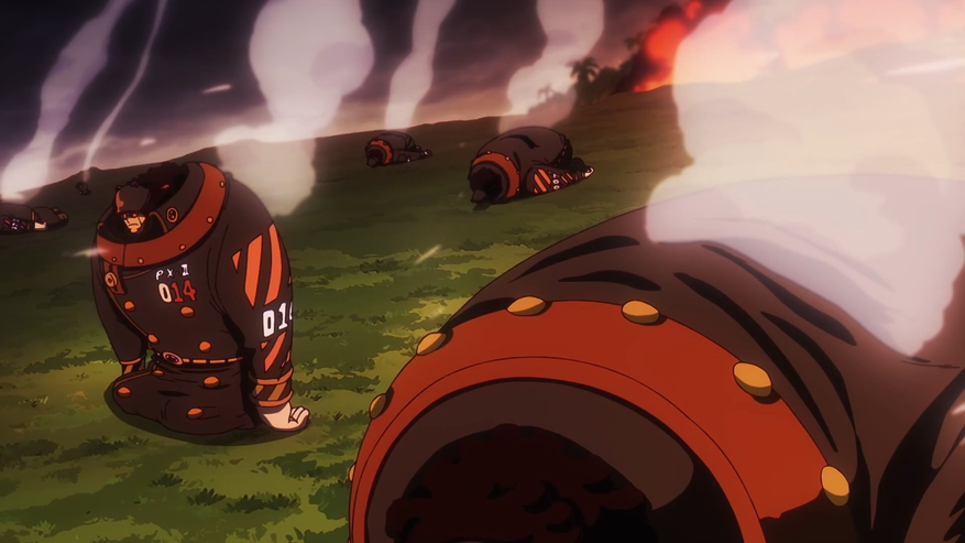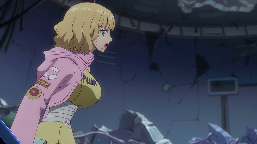 Во второй, другой новый персонаж — Эдиссон — также решается на жертву, пробивая собой барьера: он считает, что урона в 78% недостаточно, чтобы убить его, но по лицу другого Вегапанка — Лилит — всё понятно: она скорбит, что особенно хорошо будет видно чуть позже.