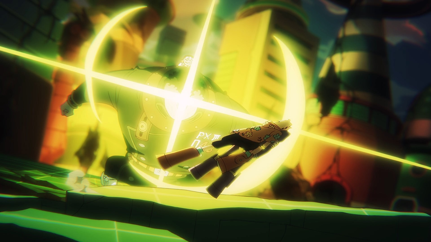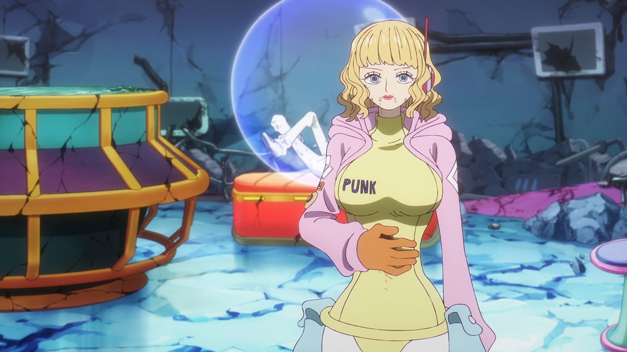 Бонни же, заметив нового врага, тут же вспоминает то, что видела в воспоминаниях своего отца — нам показывают их обрывки (полностью они будут раскрыты чуть позже) и качество всего визуала тут прям зашкаливает в этот момент. Уровень фильма. Она вырывается из рук Санджи, хватает меч и наносит Сатурну удар — впрочем, я сильно сомневаюсь, что он хоть как-то ему навредит.