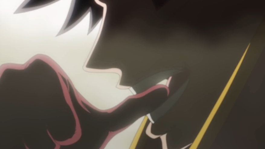 Вообще, эту сцену чуть ли не по кадрам разбирать можно — очень классно она выглядит и использует разные приёмы анимации и рисовки. Браво. В манге, кстати, такого и близко не было — всё это отсебятина от аниматоров. Правильная отсебятина.