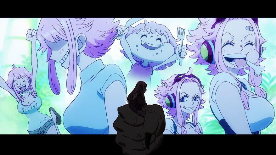 Затем нас возвращают в настоящее, где все карты вскрываются окончательно: именно Сатурн стоял за экспериментами над Джинни — матерью Бонни, именно он дал самой Бонни силу фрукта, также при помощи экспериментов — хотя здесь, забегая вперёд, он сильно ошибся — и именно он, как мы знаем из флешбэков Кумы, оказался виновен в том, что с ним случилось. Проще говоря, именно горосей Сатурн уничтожил семью Бонни и сильно повлиял на неё саму — он истинный виновник.