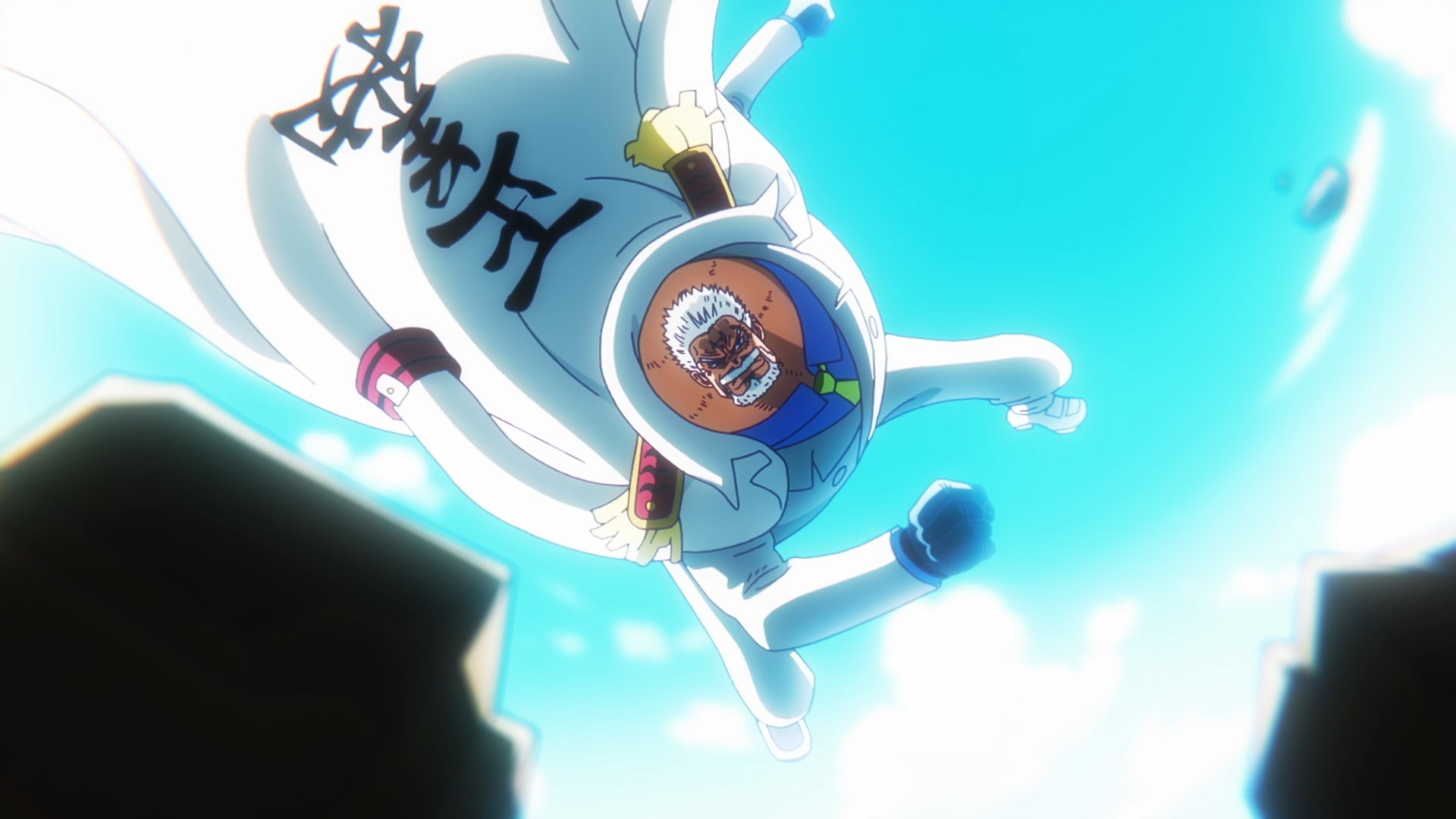 Во второй части нам демонстрируют битву между Гарпом и Кудзаном. Гарп ещё раз акцентирует наше внимание на том, что Аокидзи сомневается — в этом его главная слабость. Легендарный дозорный легко противостоит атакам бывшего адмирала и даже пробивает им ледяную землю своей специальной атакой.
