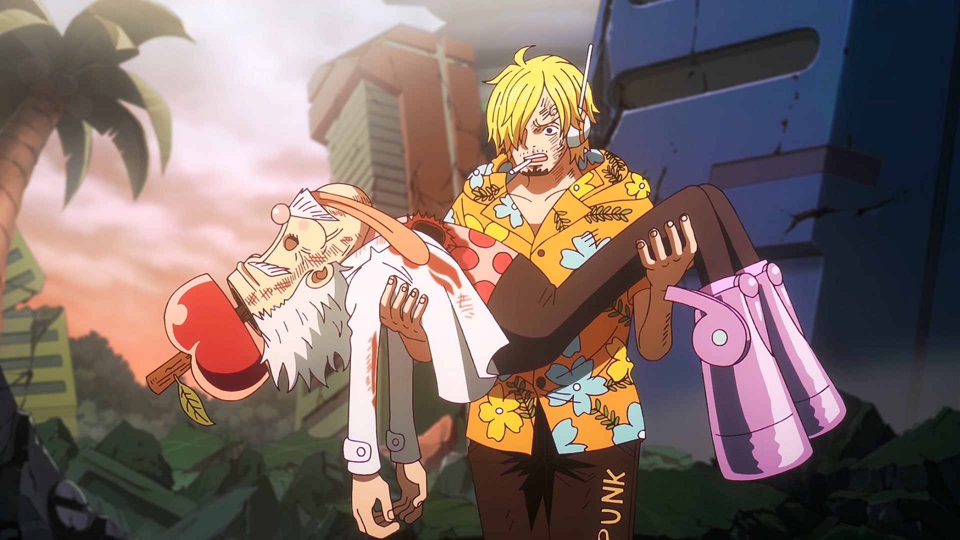 И вот знаете, я понимаю что 1/4 эпизода было тупым затягиванием времени, и как бы я не горел с этого, но назвать серию плохой у меня язык не повернётся. Мне очень понравилось, что несмотря на это, тут были самые настоящие эмоциональные качели: сперва ты бомбишь от затягиваний, потом напрягаешься и выдыхаешь от погони за Бонни и остальными, затем видишь тяжело раненного Вегапанка и обезумевшего Сатурна, потом смеёшься от кривляний Луффи который пытается отвлечь внимание врагов на себя, ну и после этого удивляешься тому, что учёного таки убили. А под конец сам Луффи ещё и серьёзности накидывает, буквально схватив адмирала и горосея грубо говоря за шкирку, после чего появляется запись Вегапанка, где он не кислый такой клиффхэнгер вываливает. И всё в одной серии!