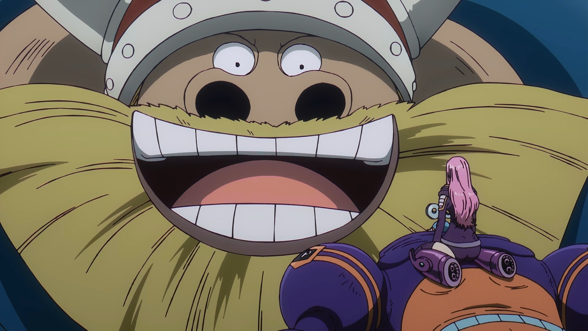 С другой стороны, я бы не сказал, что это ему как-то помогло — Луффи легко и просто отвлекал на себя его внимание избегая атак и отвлекая горосея от Вегапанка. Всё это выглядело очень забавно: кривляния Луффи в пятом гире, которые он воспринимает совершенно серьёзно — это прям фишка персонажа. Да и всего тайтла в целом, наверное.