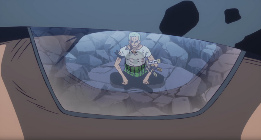 Первая половина эпизода посвящена последним дням Кумы — тут нам показывают некоторые события до таймскипа со стороны Бартоломью и других персонажей: реакцию Драгона и Эйса на победу Луффи над Арлонгом, например.
