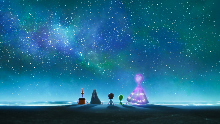Аниматорам удалось правильно распределить имеющиеся ресурсы. Изначально нас встречают достаточно приземлённые локации и короткие, но запоминающиеся вставки, будто бы нарисованные детьми при помощи цветных карандашей, а уже ближе к концу персонажи пролетают сквозь пространство, время и даже собственное сознание, где зрителей встречает грандиозный парад визуальных эффектов.