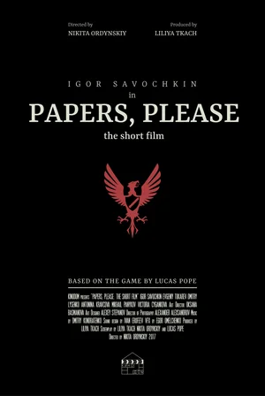 «Ваши документы» — российская короткометражная драма-триллер 2018 года, снятая Никитой Ордынским по мотивам культовой инди-игры Papers, Please Лукаса Поупа. Действие разворачивается в вымышленном тоталитарном государстве Арстотцка, где инспектор пограничного контроля (Игорь Савочкин) вынужден ежедневно решать судьбы людей, проверяя их документы на КПП разделенного войной города Грестин. Фильм мастерски передаёт гнетущую атмосферу оригинала, ставя героя перед моральными дилеммами: следовать бездушным инструкциям или помочь страдающим, рискуя собственным благополучием. Лаконичные 11 минут экранного времени насыщены напряжением, а визуальная стилизация и саундтрек, одобренный создателем игры, усиливают ощущение абсурдности бюрократической машины.