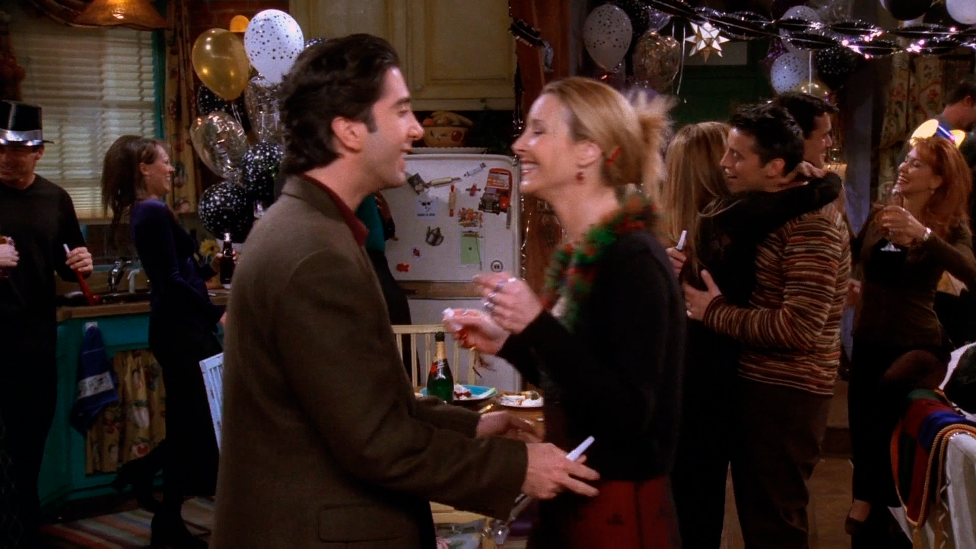 Первый праздничный выпуск сразу задаёт тон всей традиции. Друзья договариваются встретить Новый год без пар, но планы рушатся ещё до полуночи. Росс заводит экзотического питомца, который должен заполнить пустоту после расставания, Фиби неожиданно влюбляется, а остальные герои сталкиваются с чередой мелких, но болезненных неудач. Вместо шумного праздника получается вечер, где каждый по-своему чувствует себя лишним. Серия показывает, что даже в компании близких людей праздник может подчеркнуть одиночество, а не скрыть его.