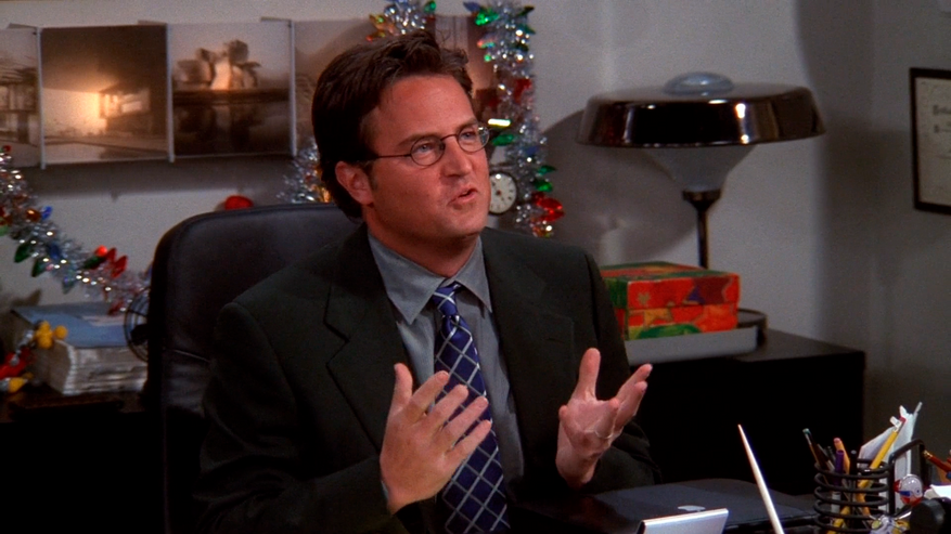 Один из самых тихих и эмоциональных праздничных эпизодов. Чендлер вынужден провести Рождество вдали от дома и сталкивается с соблазнами и одиночеством. Воспоминания о совместной жизни с Моникой постепенно перевешивают карьерные амбиции. Этот выпуск выделяется более спокойным темпом и фокусом на выборе между работой и личным счастьем.