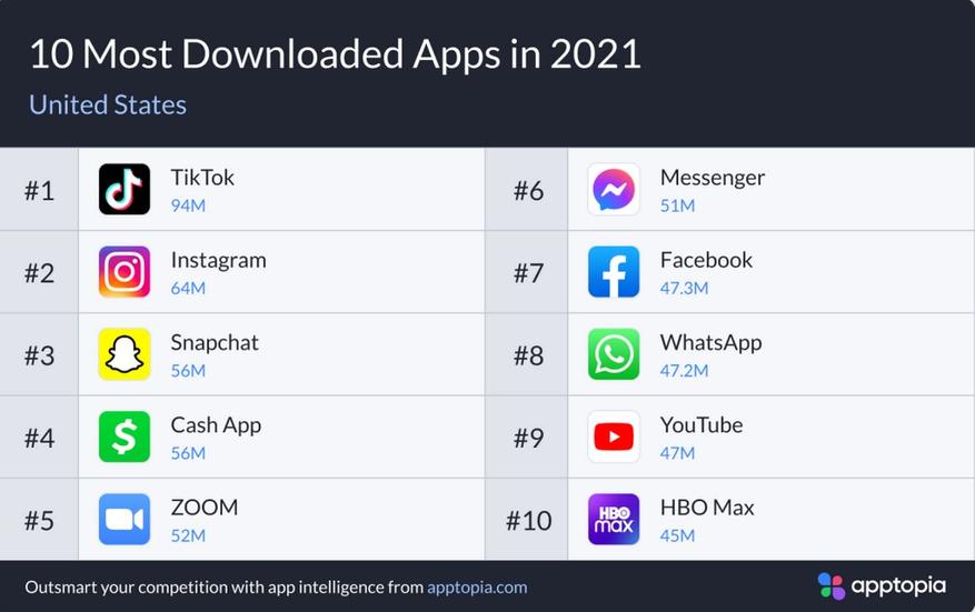 На первом месте в данном рейтинге оказалось приложение TikTok с цифрой 656 миллионов мировых скачиваний. В Америке приложение скачали 94 миллиона раз. Второе место заняло приложение Instagram*, что совсем не удивительно. А вот HBO Max заняло всего десятое место в этом рейтинге, но Netflix и Disney+ даже не попали в десятку.