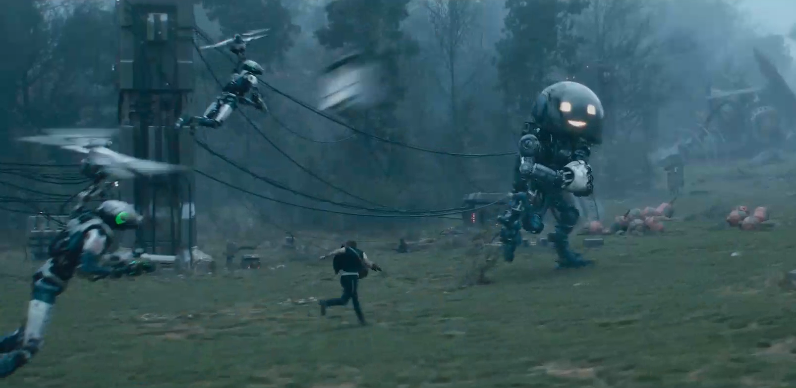 Вроде сюжет заинтриговывает, и это всё должно быть безумно интересно и увлекательно, но всё не совсем так. Сразу скажу, что фильм напоминает мне знаменитый фильм «Я робот» с Уиллом Смитом и «Первому игроку приготовиться», а также провальный фильм «Бордерлендс». Я бы сказал, что это смесь этих трех фильмов, так как там были взбесившиеся роботы, постапокалиптическая Земля и погружение в виртуальный мир с помощью шлемов. В этой новинке всё это есть.