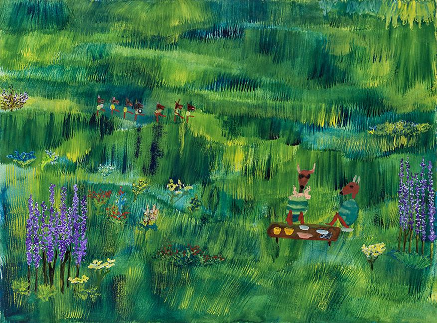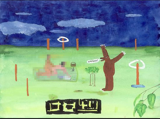 Абсурдность происходящего имеет странно терапевтический эффект. Джон Лури как говорящий и рисующий енот с кругами под глазами и волосами из ушей рисует картины в стиле его культовой работы «Превед Медвед». Он не учит живописи, не учит жизни, только рассказывает истории, показывает сценки.