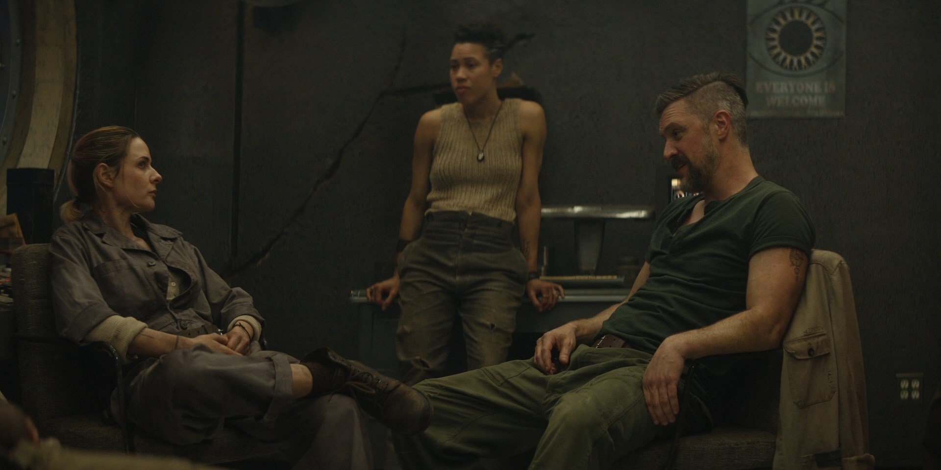 Какого-то совсем уж вопиющего имущественного и классового неравенства здесь не показано. Да здесь даже профессию сменить можно по щелчку пальца! Собственно, Джульетта так и становится шерифом. То есть из опытного инженера-механика буквально за один день можно сделать главу местной полиции. Просто, потому что предыдущий шериф рекомендовал её на своё место. Хотя они все тут берут себе стажёров на обучение. Понятно, что простые жители бункера живут поскромнее местной верхушки, но у них есть отдельное жилье и они обеспечены продуктами питания, получают медицинскую помощь, никто не ограничивает их перемещение по бункеру, и в принципе все они так или иначе трудоустроены. Да у них даже домашние животные есть! По сути — добросовестно трудись, не нарушай закон и всё будет у тебя хорошо. Рождаемость контролируется? Ну, а как иначе, если бункер рассчитан на ограниченное число людей. Возникают трудности, конфликты и преступления? Так это тоже нормально. Всё как у людей.